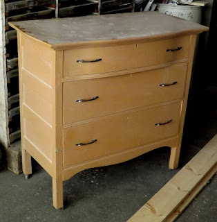 Hi Everyone!  I finally completed this dresser remake that started two weekends ago.  I picked up this bow front dresser at my first auction, here's what it looked like when I got it.